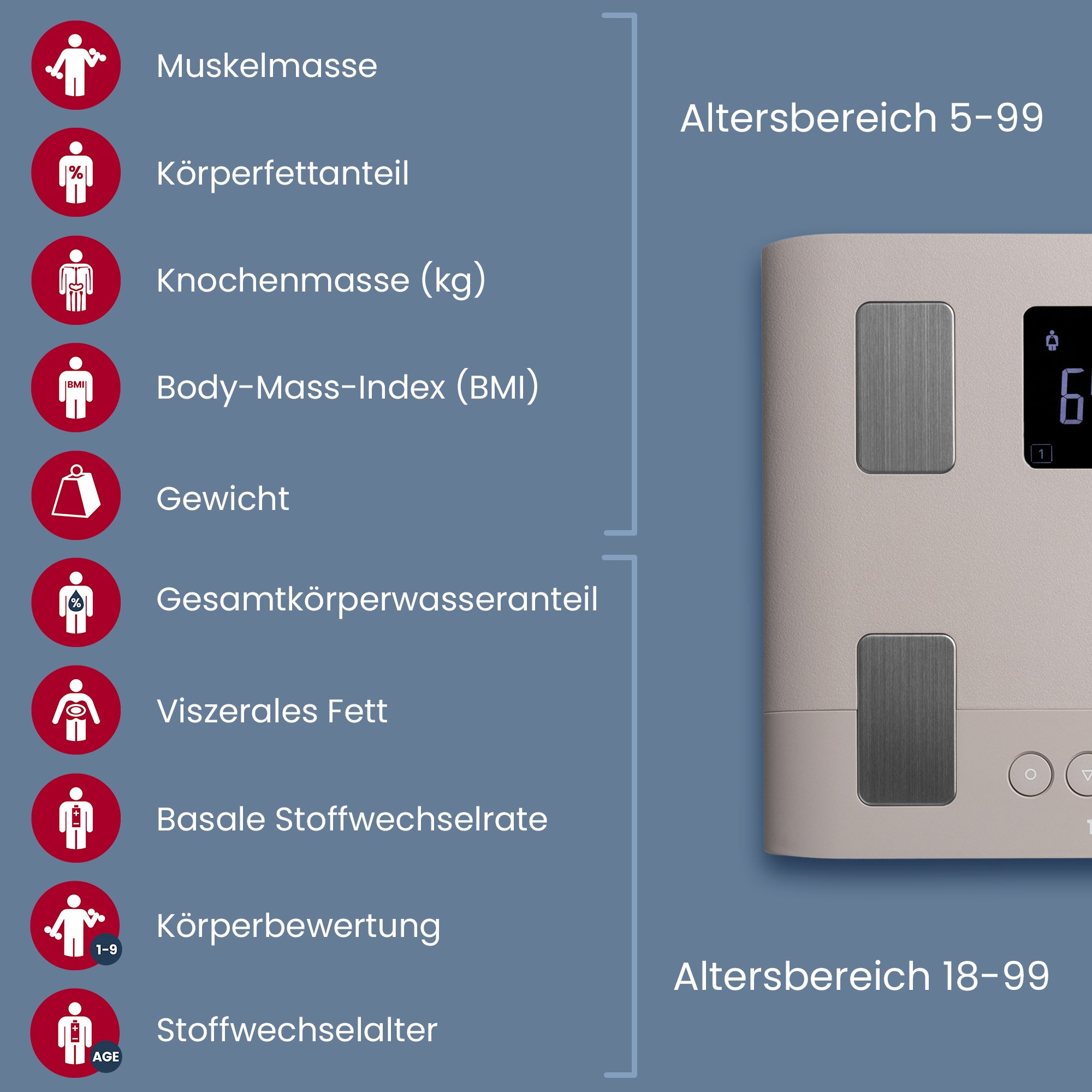 und BMI, speziell angepasst für Kinder ab 5 Jahren. Diese Präzision sorgt
