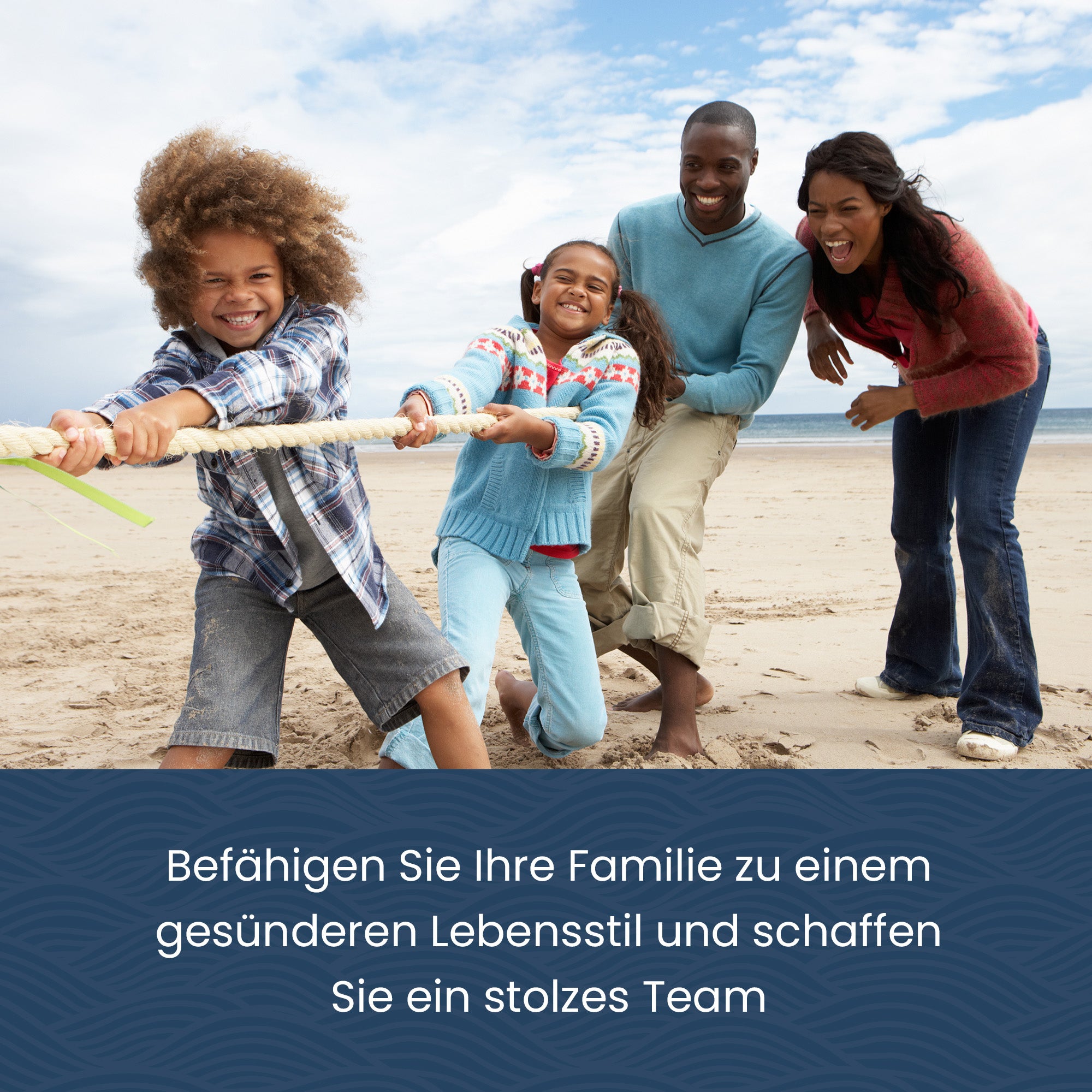 Die gesamte Familie wird auf motivierende Weise zu einem gesunden Lebensstil inspiriert, wobei eine gemeinschaftliche Teilnahme gefördert wird.